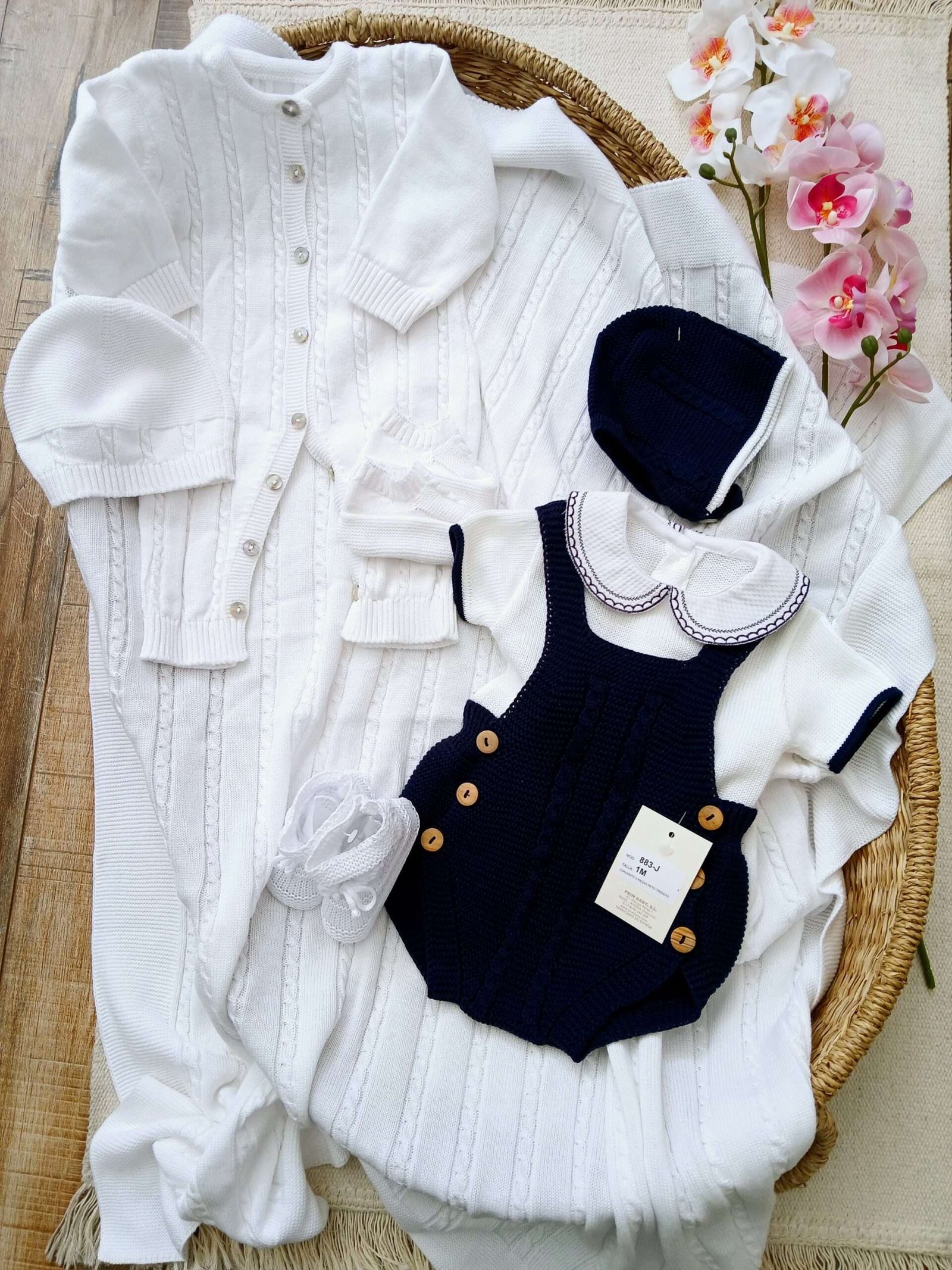 1 conjunto corto de 3 piezas con su gorro de algodón 100% hipoalergénico (abrigo, romper y gorro)