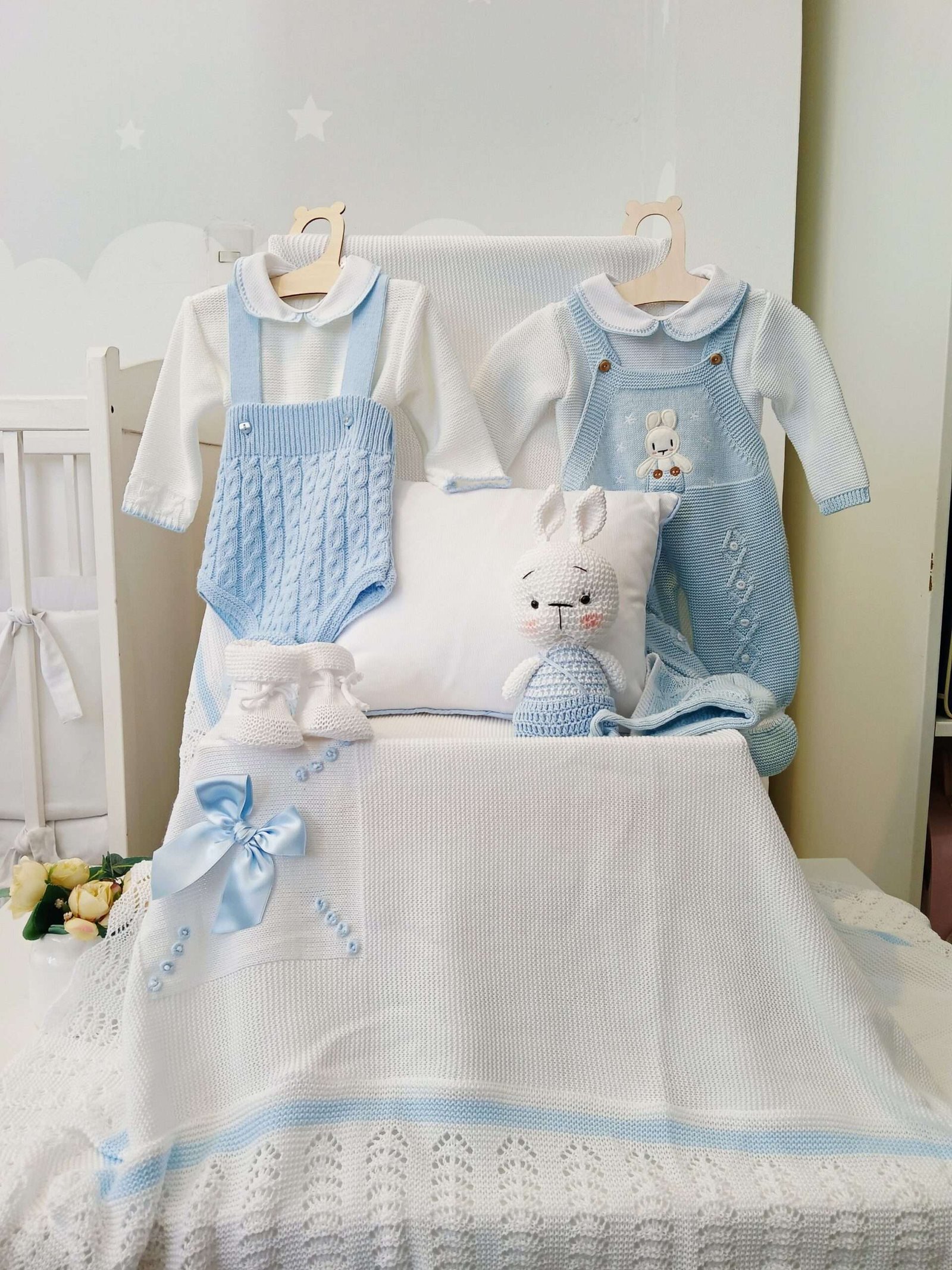1 conjunto corto de 3 piezas con su gorro de algodón 100% hipoalergénico (abrigo, romper y gorro)