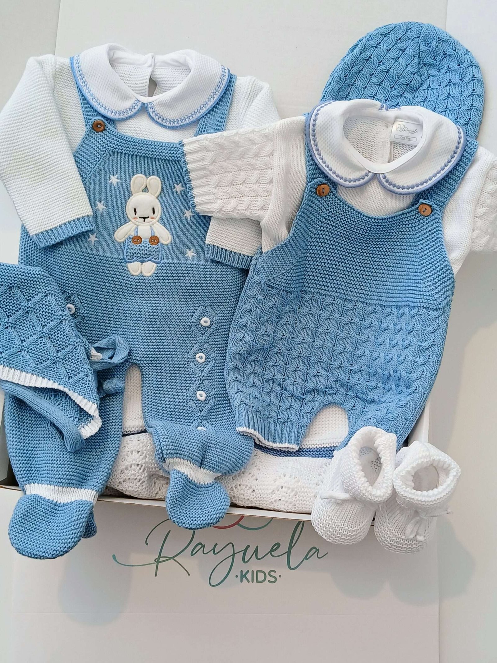 Incluye: 1 conjunto largo con su gorro de algodón 100% hipoalergénico (abrigo,romper,gorro) 1 conjunto corto de 3 piezas con su gorro de algodón 100% hipoalergénico (abrigo, romper y gorro) 1 par de zapatos tejidos 1 manta tejida de dralon perla con el nombre bordado (modelo a disponibilidad) hecho en Portugal lavado a mano tiempo de entrega Con bordado es de 12 dias. Deja el nombre de tu bebé casi al finalizar tu orden en la casilla: dejar nota de su pedido.