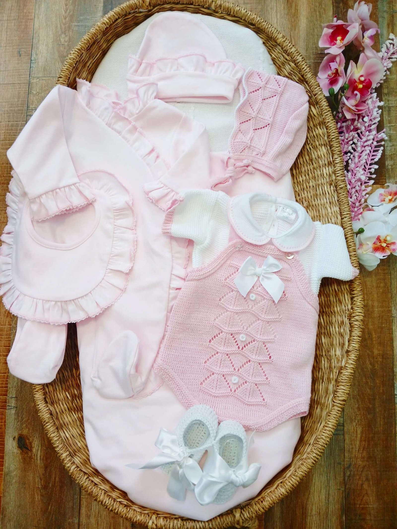 1 conjunto corto con su gorro y zapatos tejidos de algodón 100%